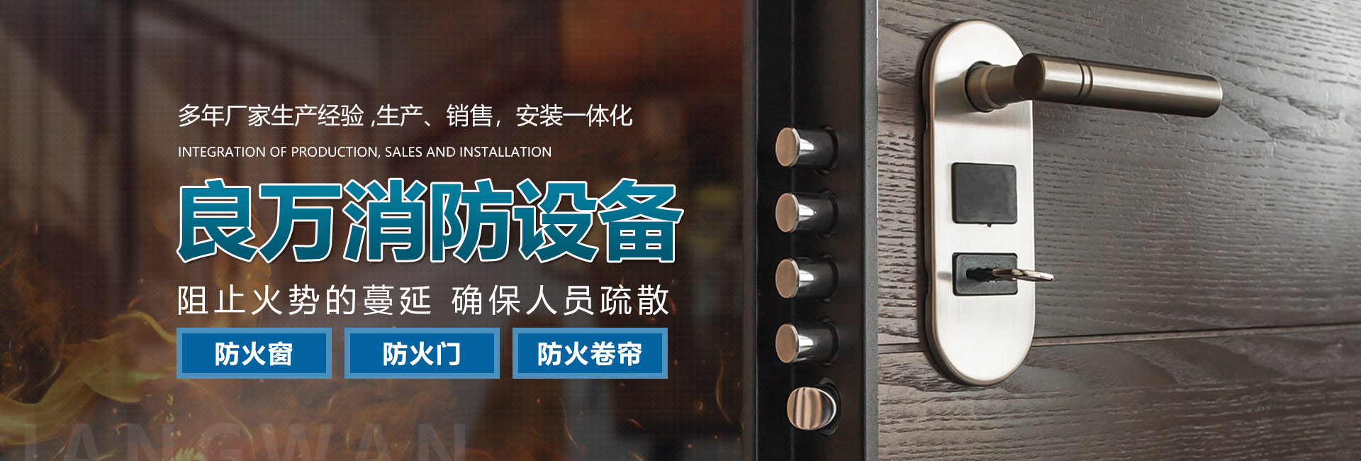 合肥良萬消防設備有限公司位于合肥市包河工業(yè)園,生產銷售安裝:防火門、防火卷簾門、防火窗等消防安全產品。公司具有研發(fā)、設計、生產、銷售、及安裝服務的綜合配套能力。合肥良萬消防設備有限公司技術力量強,設備齊全,產品不斷創(chuàng)新,以信譽立業(yè),客戶滿意是我們永無止境的追求。我們在保證產品質量的同時,也十分注重售后服務,保證消防安全產品的正常運行。公司始終堅持誠信為本的企業(yè)宗旨,真誠希望與社會各界新老客戶精誠合作,良萬愿與您攜手共創(chuàng)輝煌!